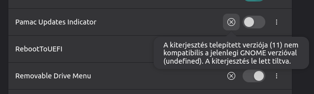 Két alap kiterjesztés nem megy ebben a gnome verzióban.